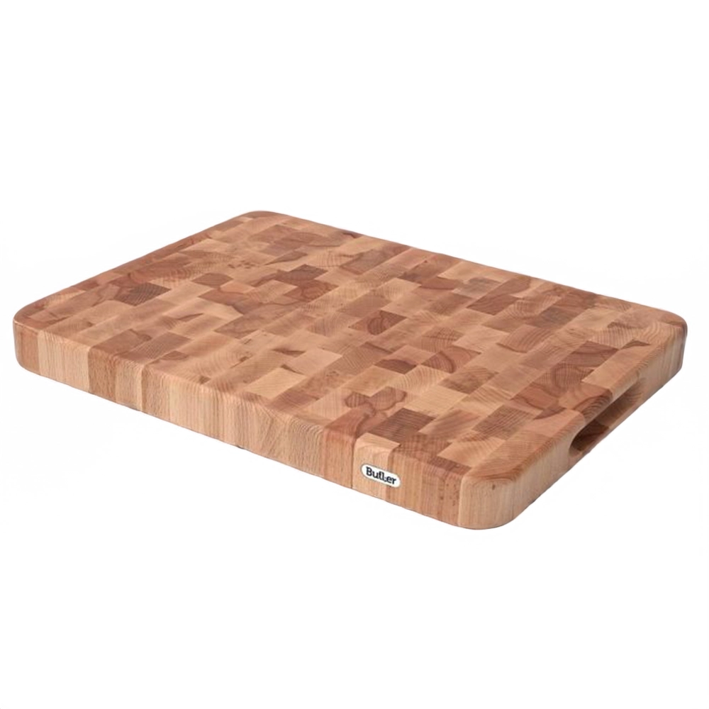 Kopshout past Butler veel toe in zijn snijplanken en hakblokken. Want het geeft een speels uiterlijk, terwijl het de plank of het blok ongelooflijk stevig maakt. Zeker als het wat dikker is.