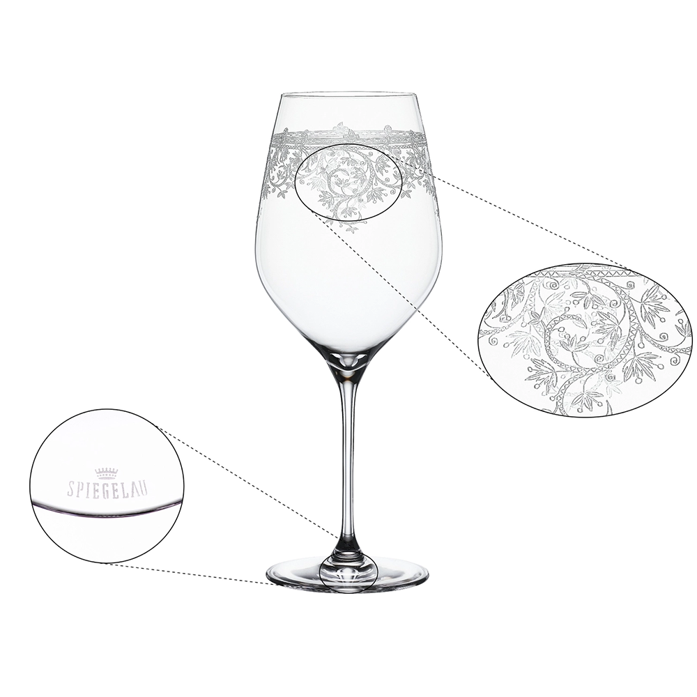 De Spiegelau Arabesque Bordeauglazen zijn gemaakt van het zuiverste kristalglas. En voorzien van stijlvolle florale tekeningen die Spiegelau duurzaam in het glas heeft ge-etst. Deze mooie, klassieke wijnglazen zijn ideaal voor de zwaardere en vollere wijnen die goed moeten kunnen ademen.